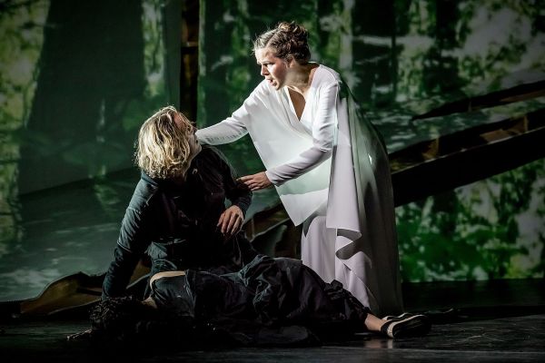 Den 2. Aufzug leitet Julia Borchert mit ihrem Rollendebut als Brünnhilde ein, und nicht nur wegen ihres mitreißenden „Hojotoho“ konnte man kaum glauben, dass sie die Titelrolle zum ersten Mal sang. Sie verfügt über einen gut geführten, ausdrucksstarken Sopran bei bester Diktion. Auch ihr engagiertes Spiel mit Wotan und ihr Verständnis sowie die damit einhergehende Empathie sind bemerkenswert. Letztere wird noch gesteigert in einer endlich einmal auch facettenreich dramatisierten Todverkündigung. Mit den Erzählungen Brünnhildes verändert sich die betongraue Wand, vor der Siegmund und Sieglinde erschöpft zu Boden gesunken sind, in einen romantisch anmutenden Wald der Ruhe und paradiesischer Assoziationen. Wenn Siegmund ihre Empfehlung, nach Walhall zu gehen, ablehnt, wird alles wieder grau.