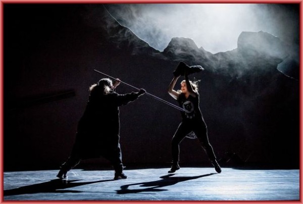 Es folgt sodann eine Vater-Tochter-Auseinandersetzung, die einige ganz neue Facetten aufzeigte und einmal mehr den unglaublichen Interpretationsreichtum des Wagnerschen Oeuvres vor Augen führte. Lucia Lucas singt diesen Aufzug mit dem Wotan-relevanten Aplomb und großartiger, bisweilen zu Herzen gehender schauspielerischer Ausdruckskraft. Aber auch Julia Borchert zeigt hier, mit Orientierung des Regisseurs, einmal mehr ihr Talent in der Darstellung der Brünnhilde. Bei der ebenso berühmten wie berührenden Phrase „Der diese Liebe mir in’s Herz gehaucht, …“ steht sie hinter Wotan im Lotussitz wie Gurnemanz in der Karfreitagsaue hinter Parsifal. Ein beeindruckendes Bild, das unzweifelhaft die Größe der Tochter gegenüber dem Vater in diesem Moment dokumentiert. Schon recht früh in dieser Auseinandersetzung wird zudem klar, dass der Zorn Wotans so stark gar nicht ist, denn bei „… da labte süss dich selige Lust;“ gibt es schon die Umarmung, die oft erst bei dem bekannten musikalischen Höhepunkt gegen Schluss erfolgt. Schon hier liefert Lucia Lucas emotional eindrucksvoll das erste Schuldbekenntnis ab. Nur wider Willen reißt sie sich bei „Deinen leichten Sinn lass dich denn leiten: von mir sagtest du dich los.“ nochmal von Brünnhilde los, um bei „Leb‘ wohl, du kühnes herrliches Kind!“ vor ihr auf die Knie zu gehen und nach dem finalen Bannspruch vor der schon Schlafenden endgültig in Verzweiflung zusammen zu brechen. Statt den Speer in die Höhe zu recken, lässt ihn Peters-Messer Lucia Lucas aus der Hand gleiten. Und sie spielt mit Julia Borchert diese Szenen einfach so berührend menschlich und einleuchtend, dass ganz sicher nicht alle Augen in Magdeburg trocken blieben…