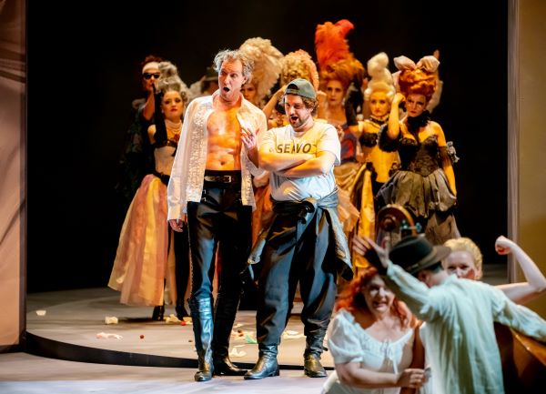 Stimmlich gab es niveauvolle Leistungen des gesamten Ensembles, allen voran Martin-Jan Nijhof als attraktiver, eleganter Don Giovanni. Der Niederländer mit dem bassgrundierten Bariton hatte 2009 in Magdeburg noch den Leporello gegeben und überzeugte jetzt mit einschmeichelnden, lyrischen Klängen im Duett mit Zerlina „Là ci darem la mano“ und im Ständchen (mit akustisch etwas zu stark eingespielter Mandoline). Aber auch die dramatisch auftrumpfenden Passagen gelangen dem schlanken, hoch gewachsenen Sänger problemlos. Sein Leporello war der Mazedonier Zhive Kremshovski, dessen ausgesprochen munteres Auftreten ebenso gefiel wie sein in allen Lagen flexibler, charaktervoller Bass. Mit voll timbriertem, abgerundetem Mezzo wartete Emilie Renard als Donna Elvira auf, die ja bis zuletzt versucht, Don Giovanni in ein normales Leben zu führen. Dies machte die Anglo-Französin trotz ihres merkwürdigen Kopfputzes glaubhaft deutlich.