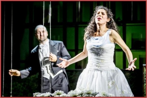 Ein elegant-dämonischer Méphisto, hier auch äußerlich Fausts „Alter Ego“, war Shavleg Armasi, der mit glänzendem Spiel und seinem facettenreichen Bass rundum begeisterte. Noa Danon gab eine anrührende Marguerite; ihren charaktervollen Sopran führte sie mit schönen Bögen durch die Partie. Die bekannte „Juwelen-Arie“ kam etwas verhalten, während sie das Schluss-Terzett mit Emphase dominierte. Der unglückliche Valentin wurde von Johannes Wollrab glaubhaft gestaltet; sein Bariton blieb dagegen blass und konnte bei allzu angestrengten Höhen nicht überzeugen. Siébel war bei Lucia Cervoni gut aufgehoben, deren heller Mezzo in allen Lagen ausgeglichen war. Undine Dreißig und Paul Sketris ergänzten als Marthe und Wagner.