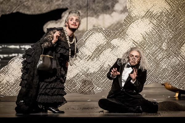 Wäre noch das komische Paar, das als zeitgenössische Opernbesucher aus dem Publikum kommen. Zum einen die Murmilla von Marco Angioloni, hier findet sich echtes Bühnentalent, ein interessanter Tenor, gesanglich, sprachlich prima, eine "alte Schachtel", die sich richtig derb mit dem Philosophen Gelasius streitet Ebenfalls eine Travestierolle. Alexia Macbeth ist Mezzosopran, lässt sich aber rein gesanglich schlecht beurteilen , denn in ihrer Albert-Einstein-Maske nutzt sie sehr außersangliche Mittel um komisch zu wirken, ein bißchen stimmliche Geisterbahn, die ich persönlich nicht goutiere, auch eine sprachliche Souveränität, wäre für diese Partie wichtig.