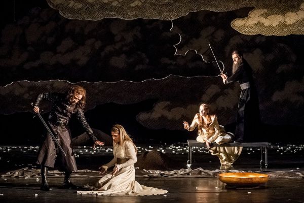 Michael McCarthy hat als Regisseur durchaus Erfahrung mit Musiktheater und hatte in Magdeburg wohl erfolgreich Philipp Glass`"Der Prozess" inszeniert, zeigt sich bei Telemann jedoch als nicht barocktauglich. Nach einem durchaus eindrucksvollen Anfangsbild, versiegten die Ideen des Regisseurs schlagartig und außer emotionalem Herumgerenne mit Schwertgeplänkel tat sich nichts. Die Personnage der Oper blieb schlichte Figurine, statt lebendigem Charakter. Bühnenarbeiter reichten Requisiten an und ab, mit denen auch nicht allzu kreativ umgegangen wurde. Der Höhepunkt von der Bühnentechnik aufgeschüttete Erdhaufen, die dann wieder von der Bühne gefegt wurden; warum? Fragen Sie mich nicht! Die Ausstattung von Simon Banham sieht auf der leeren Bühne lediglich barocke Wolken als Soffittenhänger vor, die verschoben werden; hübsch anzusehen , doch das kennt man nach fünf Minuten. Banhams Kostüme bieten solide historisierende Couture. Szenisch ist das alles für so einen Abend deutlich zu wenig.