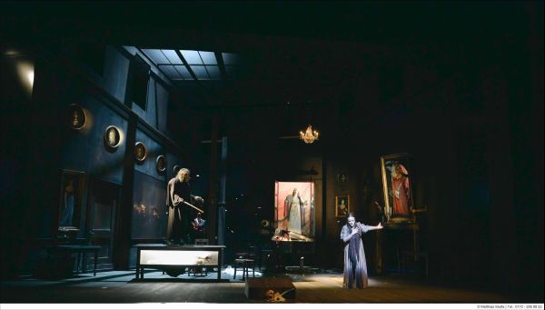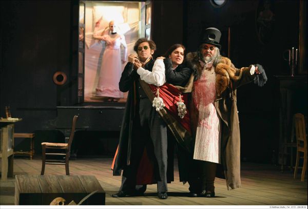 Bilder sagen mehr als Worte, wenngleich ich dazusetzen würde, daß es so muffig und altbacken, wie es über die Fotos auf den ersten Blick wirkt (eben typischer E.T.A. Hoffmann) dann doch ist – insbesondere der vierte Akt (Giulietta) gestaltet sich zu enormer dramaturgischer Dichte, denn er bricht das etwas museale Einheitsbühnenbild mit überraschenden surrealen Effekten auf.