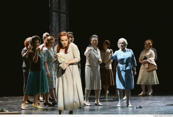 Helen Malkowsky , einst Oberspielleiterin in Nürnberg, dann Operndirektorin in Bielefeld und jetzt Hausregisseurin in Chemnitz, hat in Krefeld/Mönchengladbach bereits Tschaikowskys „Mazeppa“ und Verdis „Stiffelio“ inszeniert, beides anspruchsvolle Produktionen. „Katja Kabanowa“ besitzt eine besondere Aura. Fotos im Programmheft suggerieren eine realistische Konzeption, doch bietet die Ausstattung von
