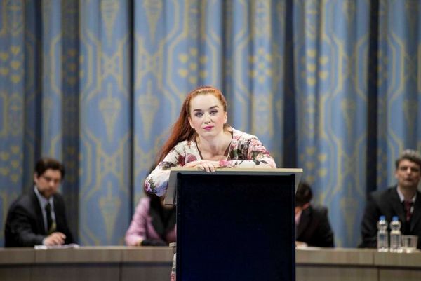 Das Wunder, dem in dieser Inszenierung vielleicht zu Recht eine so deutliche Absage erteilt wird, ereignete sich dann in Mönchengladbach an diesem denkwürdigen Abend aber doch. Noch am Mittwoch vor der Premiere musste Izabela Matula krankheitsbedingt ihre Mitwirkung als Elsa absagen. Die britisch-kanadische Sopranistin Jessica Muirhead, die am Aalto-Theater in Essen schon als Elsa überzeugt hatte, sprang kurzfristig ein und machte den Abend zu einem musikalischen Ereignis. Ihr glockenreiner, „mädchenhafter“, warm-timbrierter und im Forte strahlend auftrumpfender Sopran wird der Rolle in jeder Beziehung gerecht. Schon ihre Traumerzählung „Einsam in trüben Tagen“ ging unter die Haut, ihre große Auseinandersetzung mit der schon durch ihr schwarzes Kleid als Gegenspielerin gezeichneten Rivalin Ortrud ließ an Modulation und Ausdruckskraft keinen Wunsch offen, schließlich bewältigte sie die gesanglichen Steigerungen im großen Schlussduett des dritten Aufzugs mit einer Leidenschaft und strahlenden Mühelosigkeit, die einfach größte Bewunderung abverlangt. Jessica Muirhead ist für diese Partie eine Luxusbesetzung und braucht den Vergleich selbst mit einer Ausnahmekünstlerin wie Anja Harteros nicht zu scheuen, die der Rezensent in einer denkwürdigen Aufführung des „Lohengrin“ mit Klaus Florian Vogt in der Titelrolle in Berlin erleben durfte.