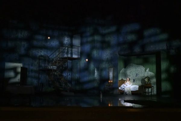 Vorab aber noch ein paar kurze Worte zum (etwas abgewandelten) Inhalt der Oper, die in Mönchengladbach als ein eindringliches Familiendrama auf die Bühne kommt. Die auf Grund einer Gehbehinderung zumindest zum Teil an den Rollstuhl gefesselte Rusalka vertraut ihrem Vater (Wassermann) an, dass sie von einem Leben unter den Menschen träumt, um dort ihre große Liebe zu finden. Außerdem sei es an der Zeit, sich von der Familie zu lösen und fortan ihr eigenes Leben zu leben. Der alte Mann warnt seine Tochter vor diesem Schritt, denn die menschliche Welt ist eine durchaus grausame. Auch die Mutter (Jezibaba) will ihre Tochter nicht gehen lassen, gibt aber schließlich nach. Allerdings weist sie nochmals eindrücklich darauf hin, dass sie damit für immer ihr zu Hause verliert. In der Menschenwelt begegnet Rusalka einem Prinzen, der ganz ihren Träumen entspricht. Die beiden wollen heiraten, obwohl Rusalka von vielen als Außenseiterin abgelehnt wird. Bevor es allerdings zur Hochzeit kommt, taucht eine fremde Fürstin auf, in der Rusalka fast alptraumhaft ihre Mutter erkennt. Rusalka leidet sehr unter den Versuchen der Fürstin, ihr den Prinzen abspenstig zu machen. Nur in ihrem Vater sieht Rusalka noch einen Retter, der sie aus dieser feindlichen Gesellschaft befreien kann. Doch leider hat auch der Vater seine eigenen Probleme in dieser zerrütteten Familie. Dennoch darf Rusalka heimkehren, wird von ihrer Mutter aber bestraft und vom Familienleben nahezu ausgeschlossen. Darüber hinaus verlangt sie von der Tochter, sich am Prinzen zu rächen, indem sie ihn tötet. Als dieser wieder im Haus erscheint, kommt es zu einer tödlichen Begegnung.