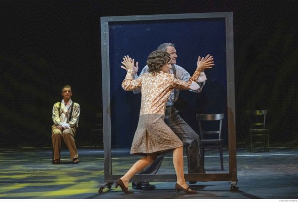 Nach dem wirklich sehr humorvoll gestalteten Einstieg wird das Stück im Laufe des Abends dann doch etwas ernster bei der Betrachtung der einzelnen Figuren. Hierbei hält man sich dann auch sehr stark an den Originaltexten. Hierzu Frank Matthus im Interview des Programmheftes: „Dabei bleibe ich eng am Text, einfach weil er gut ist. (…) Es gibt auch keine Aktualisierung. Was ist das überhaupt? Wenn es eine intensive Geschichte ist, die berührt, die etwas … wie soll ich sagen …“ÜBER-gültiges“ hat, dann kann die Liebesgeschichte von mir aus auch in der Steinzeit spielen. Davon, dass man sie in den Weltraum versetzt, wird sie nicht aktueller“. So bleibt man auch in Mönchengladbach bei Isherwood im Berlin der 30er Jahre. Jannike Schubert gibt eine differenzierte Sally Bowles, die auch gesanglich stark daherkommt. Den jungen Otto Nowak mit dem Isherwood eine sexuelle Beziehung unterhält spielt Lars Wandres ganz hervorragend und als jüdischer Großunternehmer Bernd Landauer kann Adrian Linke einmal mehr seine Wandlungsfähigkeit zeigen. Zuvor ist er u. a. auch noch als Conférencier zu sehen und darf hierbei den Ohrwurm aus dem Musical vortragen. Abgerundet wird die Besetzung durch Yael Shervashidze , Jessica Roethlinger und