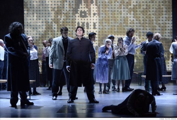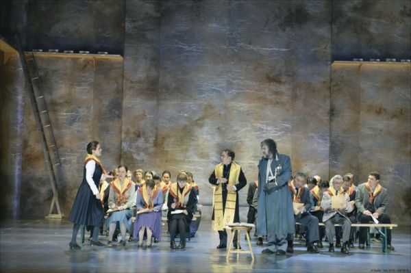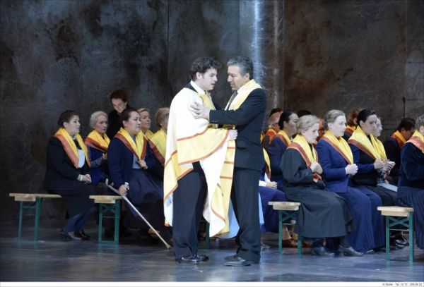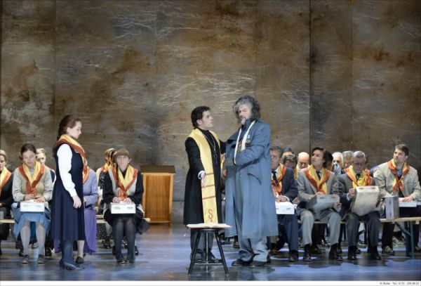 Das Premierenpublikum vermochte sich mit alledem jedoch offenkundig anzufreunden. Sei’s denn. Den Jubel über die musikalische Ausführung, vor allem die der Sänger, kann man hingegen nur voll bejahen. Selbst der etwas unauffällige Federico (Linas Cousin) ist mit ANDREY NEVYANTSEV aus dem Opernstudio Niederrhein extrem gut besetzt. Mit der Cousine Dorotea, gleichfalls eine Minipartie, vermag EVA MARIA GÜNSCHMANN nicht zu punkten, aber man hat ja noch ihren flammenden Adriano im Ohr. HAYK DÈINYAN (Gemeindevorsteher Jorg – im Schauspiel ist er Stiffelios Adoptivvater) bestätigt sein bekanntes solides Niveau. Dem Raffaele gibt MICHAEL SIEMON ausreichend Tenorschmelz. Freilich ist ihm MICHAEL WADE LEE weit über, nicht nur wegen des größeren Umfangs der Titelpartie. Der amerikanische Sänger verfügt über ein weich gerundetes, aber doch festes Organ mit gesunder, unforcierter Höhe, artikuliert empfindsam, wobei das religiös Eifernde von Stiffelio keineswegs zu kurz kommt. Ganz superb ist wieder einmal (nach ihrer Marija in „Mazeppa“) IZABELA MATULA mit ihrem leicht metallischen Sopran, der in der oberen Lage regelrecht gleißt. So wird Lina zu keiner abgehärmten Leidensfigur, ihre Demut im letzten Akt entbehrt alles Kriecherischen. Hinreißend die lyrische Intensität bei der Arie am Grab (eine der wenigen wirklichen Belcanto-Szenen der Oper) und die in mühelosem Piano bewältigten Oktavsprünge in der großen Preghiera.