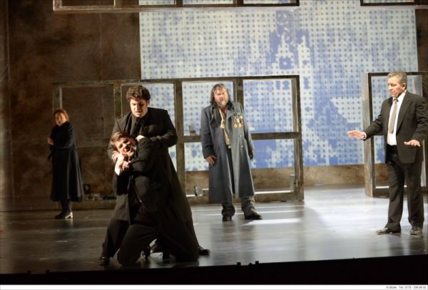HARTMUT SCHÖRGHOFERs Ausstattung fasst die Szene mit hohen, hellen Wänden ein – das wenig individuelle Dekor eignet sich zur Wiederverwendung. Ab und zu wird im Hintergrund eine gefächerte Wand herabgelassen oder hinaufgezogen. Zu Beginn des 2. Aktes (die verzweifelte Lina am Grabe ihrer Mutter) teilt sie sich und lässt mit den frei werdenden Flächen ein Kreuz entstehen. Das Symbol stimmt, die Wirkung weniger. Die Kostüme stammen von SUSANNE HUBRICH; sie sind modern, mehr kann man zu ihnen nichts sagen.