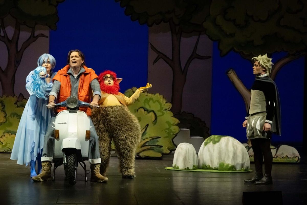 Diese Geschichte wird in der Inszenierung von Ulrich Proschka sehr liebevoll umgesetzt, mit einigen wenigen, aber gut platzierten Mitmachaktionen für die jungen Zuschauer. Das Bühnen- und Kostümbild von Christine Knoll gefällt ebenfalls und beinhaltet bei der Vespa-Fahrt durch den Wald eine gelungene Videoeinspielung als besondere optische Überraschung. Die Idee, ein interaktives, märchenhaftes Musical für die Kinder von heute zu schreiben, existierte bei Frau Seefing schon lange, wie sie uns in einem Gespräch vor der Premiere verriet: „Musiktheater für Kinder zu machen liegt mir sehr am Herzen und ich konnte mich beim Schreiben aus einem großen Erfahrungsschatz bedienen. Kinder sind das ehrlichste und zugleich anspruchsvollste Publikum. Ein Bühnenstück schreiben zu dürfen, in dem ich die mir wichtigen Themen Diversität, Neurodiversität, Inklusion, bedingungslose Freundschaft und dem Schutz von Rückzugsorten in einer märchenhafte Geschichte etablieren kann war eine wunderbare Aufgabe.“ Bereits in den Vorjahren waren die beiden von Frau Seefing bearbeiten Stücke Die kleine Seejungfrau Rusalka und Die Schöne und das Biest als Kinderoper am Theater Krefeld-Mönchengladbach zu sehen. Mit Einhörner gibt es hier nicht! wurde nun erstmals eine völlig neue Geschichte von ihr als Bühnenstück für die ganze Familie geschrieben. Da das Stück eine gute Portion Humor besitzt, kann es auch erwachsene Zuschauer über 70 Minuten hinweg durchaus begeistern.
