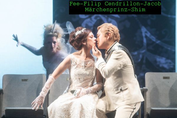 Ihr „Märchenprinz“ wurde nicht, wie von Massenet als Hosenrolle zwischen Cherubino und Rosenkavalier beabsichtigt und kürzlich in der Aufführung der MET auch befolgt, von einer Mezzosopranistin sondern vom Tenor Youn-Seong Shim dargestellt.. Obwohl oben vom Kronleuchter her sang er legato und melancholisch p vom „Herzen ohne Liebe“ (Coeur sans amour) Bei den Liebesszenen konnte er auch dramatisch bis zum hohen Spitzenton„wagnern“ Höhepunkt war das verzweifelte Duett der beiden im III. Akt, wo sie sich hören aber nicht sehen konnten, eigentlich getrennt durch eine Blumenhecke, hier von den Feen mit verbundenen Augen herumgeschubst.