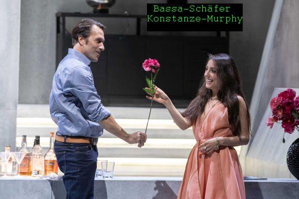 Marielle Murphy als seiner geliebten Konstanze lag vor allem die lyrische Arie über ihr trauriges Los. Für die Koloraturen verfügte sie über die passende Höhe und dort stimmliche Beweglichkeit, etwas Schwierigkeiten bereiteten tiefe Töne und dadurch die grossen Stimmsprünge. Beim schwersten Stück ihrer Partie, der Martern-Arie, wurde ihr das Singen zusätzlich dadurch erschwert, daß Bassa Selim alle möglichen Kleidungsstücke und lärmend Schuhe in ihre Richtung warf – schlimme Regie ohne Rücksicht auf die Musik! Vom Staatstheater Oldenburg kommend spielte und sang Martha Eason keck mit passendem Timbre die Partie der Blonde. Vor allem die Andante grazioso – Arie Durch Zärtlichkeit mit Tonleitern und Koloraturen bis hin zum hohen e bewies ihre Gesangskunst und spielerisch ihre Kunst, Osmin in ihrem Sinne zu becircen.