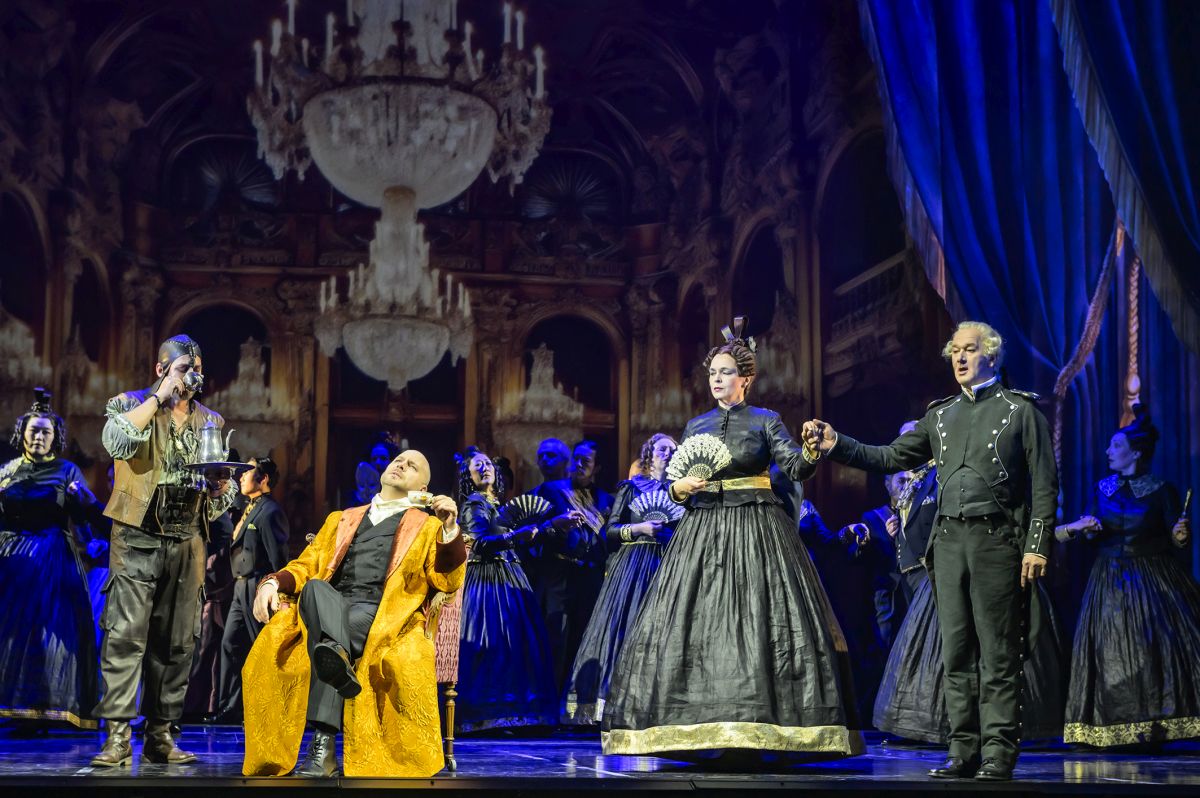 Musikalisch bietet das Musical Der Graf von Monte Christo viele Ohrwürmer. Sei es das Duett Niemals allein zwischen Edmond und Mercédès, das Terzett Geschichte der drei Ganoven oder die beiden großen Soli Hölle auf Erden und Der Mann, der ich einst war des Grafen von Monte Christo – sie bleiben allesamt lange im Ohr und zählen zweifelsfrei zu den großen Musical-Hits der letzten 15 Jahre. Für die Titelrolle konnte das Theater Münster David Arnsperger als Gast gewinnen, der bereits in vielen Hauptrollen in den verschiedensten Musicals zu sehen war. Mit seiner kraftvollen Stimme verkörpert er den Grafen von Monte Christo auf beeindruckende Weise und überzeugt ebenso in den ruhigeren und melodischen Momenten des Stücks. An seiner Seite steht Vera Lorenz, eine gebürtige Münsteranerin, die 2021 ihr Musicalstudium an der Hochschule Osnabrück abgeschlossen hat. Nachdem sie im Jugendalter bereits mit dem TheaterJugendOrchester-Projekt auf der Kleinen Bühne des Theaters Münster zu sehen war, ist die Rolle der Mercédès ihr erster Auftritt im Großen Haus. Diesen meistert sie mit viel Spielfreude und schönem Gesang. Aus dem eigenen Ensemble des Theaters überzeugt vor allem Gregor Dalal in den beiden Rollen des Staatsanwalts Gérard de Villefort und des Abbé Faria. Die weiteren Figuren sind allesamt rollendeckend besetzt. Unter der musikalischen Leitung von Thorsten Schmidt-Kapfenburg spielt das Sinfonieorchester Münster kraftvoll und präzise, wie es sich für dieses Stück gehört und überzeugt sowohl in den rockigen wie auch den sinfonischen Momenten des Musicals.