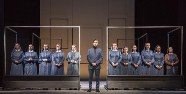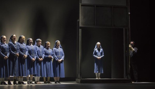 Für die Regisseurin Katharina Thoma geht es in dieser Oper gar nicht vordergründig um den Glauben, auch nicht um die Angst der weiblichen Hauptrolle. Vielmehr sucht jeder seinen Platz im Leben und Blanche glaubt, ihren im Kloster zu finden. Das allzu karge Bühnenbild von Sibylle Pfeiffer wird im Wesentlichen von metallenen Rahmen bestimmt, die Begrenzungen sind, aber auch dem Geschehen einen Rahmen geben: Mutter Marie wird zur Glaubensfanatikerin und ist von ihrer Idee des Märtyrertums geradezu besessen, die alte Priorin hadert im Moment des Todes mit dem Gott, dem sie ihr ganzes Leben geweiht hat, ihre Nachfolgerin, Madame Lidone, ist mit der neuen Mutterrolle überfordert, stellt sich ihr aber mutig und die junge Schwester Constance wird trotz des zur Schau gestellten Frohsinns von einer latenten Todessehnsucht geplagt. Thomas ausgefeilte Personenführung schafft Spannung, auch wenn das Licht oft allzu plakativ und grob erscheint. Die Regisseurin entscheidet sich, das musikalisch eindrucksvolle Finale als das darzustellen, was es ist: keine weißen Unterhemdchen, keine platzenden Blutbeutel, keine ausgeblasenen Kerzen und keiner herabfallenden Stoffbahnen, nein – die Nonnen gehen einzeln zur Guillotine und nach deren Fall verstummt eine Stimme im Chor. Das klingt brutal, ist es aber gar nicht – und so geraten das erzwungene Ablegen und später wieder Anlegen der Nonnentracht zu den eigentlichen szenischen Gänsehautmomenten. Poulencs Musik tut ein Übrigens, dass dieser Abend lange nachhallt – und natürlich der fast tadellos zu nennende Gesang.