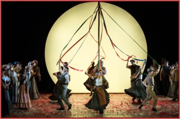 Zu dieser Geschichte hat Federico Moreno Torroba hinreißende Melodien voller spanischer Leidenschaft und gefühlvolle Kantilenen erdacht, die in Nordhausen vor traditioneller Kulisse erklingen. Die Lesart von Alfonso Romero Mora orientiert sich eng am Stück, erzählt wird in der stimmungsvollen Kulisse von Ricardo Sánchez Cuerda, Gabriela Salaverri hat wunderbare, romantisierende Kostüme geschneidert, so dass sich der Charme dieser Geschichte voll entfalten kann. Dazu trägt sicher auch die gelungene und wortwitzige Übersetzung von Stefanie Gerhold bei, zumindest bei den gesprochenen Dialogen. Diese Zarzuela wird in Nordhausen erstmals auf Deutsch gegeben – ein in den gesungenen Passagen zweifelhaftes Vergnügen, da die Textverständlichkeit da und dort doch recht zu wünschen übrig lässt. Da hätte vielleicht der gesungene Originaltext mehr spanisches Lokalkolorit aufflammen lassen – und eine Übertitelung der Verständlichkeit einen Gefallen getan.