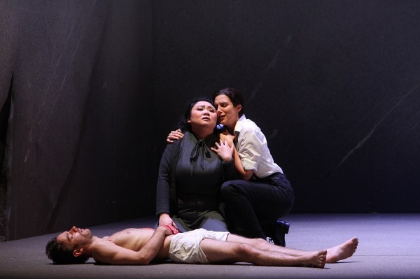Dabei wird fast ausnahmslos hervorragend gesungen. Lediglich Christian Damsgaard, der als Gast den Creonte singt, fehlt es an stimmlichem Volumen, um den König glaubhaft als selbstbewussten Herrscher mit tyrannischen Anlagen dazustellen. Sein an sich klangschöner Tenor kann vor allem in den hohen Lagen nicht gegen die beherzt singenden Schwestern Antigona und Ismene bestehen, darstellerisch jedoch liefert der Däne eine tolle Leistung ab. Erika Simons läuft in der Rolle der Titelfigur nicht nur auf diesem Gebiet zu Höchstform auf, sondern begeistert, von ein paar Schärfen in den Höhen abgesehen, als Antigona mit wandlungsfähigem und farbenreichem Sopran. Unterstützt wird sie von Lina Liu, die als ihre Schwester Ismene leider nur wenig von ihrer so kraft- wie gefühlvollen Stimme zeigen darf, während Katarina Morfa in der Hosenrolle des Emone eine intensive Darstellung des Königssohnes gelingt, als der sie die Stärken ihres bewegenden Mezzos voll ausspielt. Daniel Wagner komplettiert das Ensemble mit feinem Tenorgesang als Creontes Berater Adrasto. Angelehnt an die Chorgesänge im antiken Schauspiel hat Tommaso Traetta eine umfangreiche Chorpartie komponiert, der sich die Damen und Herren des Opernchores unter der Leitung von Markus Lafleur unumwunden und auf ganzer Linie überzeugend stellen. Da ist kein Wackler zu hören, wie aus einem Mund klingen beispielsweise die Totenklagen, harmonisch vollkommen und vollkommen harmonisch. Ein Genuss!