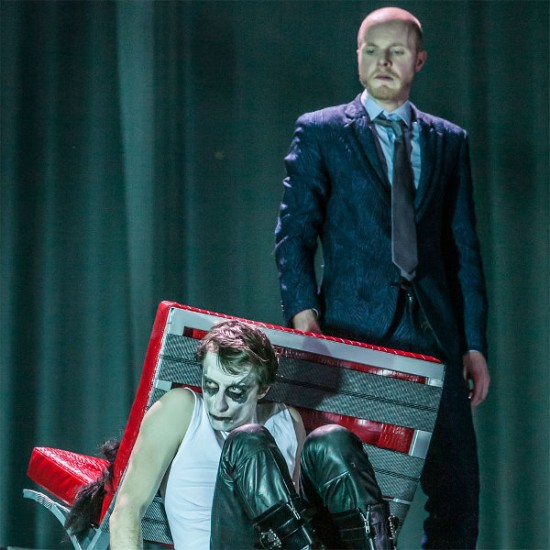 Nein, „Caligula“ ist, unter der genauen Regie Charlotte Koppenhöfer s, mit Jacob Kelle r als jungenhaft-gefährlicher Kaiser, in Regensburg keine Oper, aber tatsächlich ein Werk des Musiktheaters, obwohl eher, wenn auch selten, gebrüllt und nie gesungen wird. Nicht, dass der Name des Komponisten schon auf dem Cover des (im übrigen gut gemachten) Programmhefts prangen würde. Wer jedoch an diesem 110 Minuten langen pausenlosen Abend genau hinhörte, wird bemerkt haben, dass die Musik einerseits scheinbar kaum bemerkbar ist und über ein paar kräftige Akzente kaum hinausgeht – aber, wenn nicht alles täuscht, fast pausenlos von der Tonspur kommt. Ja: irgendwann hat der sensible Hörer den Eindruck, dass die Musik selbst dann erklingt, wenn sie nicht erklingt. Mit einem Wort: hört man sie nicht, ist sie vermutlich nur so leise, dass man sie nur noch mit Katzenohren wahrzunehmen vermag. In diesem Sinne ist sie, sozusagen, rein existentialistisch: selbst dort, wo sie nicht zu existieren scheint.