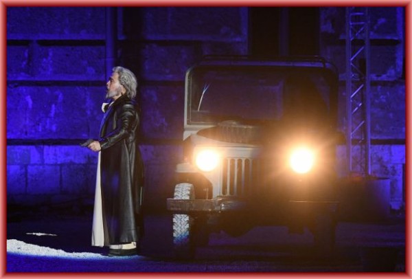Nun haftet der „Aida“, bisweilen ein gewisser Ruch der Gigantomanie an, die sich besonders in dem auch vielen Nichtopernbesuchern (bis hin zum Fußballpublikum…) bekannten Triumphmarsch äußert. Gerade eine open air Produktion eignet sich dazu, den diesbezüglichen Erwartungen eines breiten Publikums zu entsprechen – man denke nur an die Arena von Verona. Diesem Stereotyp wollte aber das Ulmer Regieteam ganz und gar nicht nachgeben. Und das ist das eigentlich Besondere an dieser in vielerlei Hinsicht ungewöhnlichen „Aida“-Inszenierung.