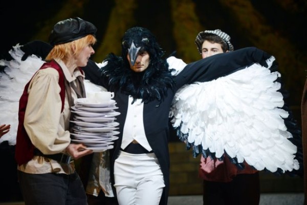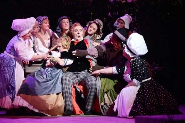 Und letztere sucht man in dieser Produktion nicht vergebens. Es handelt sich um die erste Regiearbeit des seit der Spielzeit 2011/12 als Regieassistent und Abendspielleiter am Würzburger Theater engagierten Andreas Beuermann. Die Vorzüge dieses jungen Regisseurs sind sicher seine trefflichen handwerklichen Fähigkeiten. Die ausgeprägte Personenführung sowie sein Hang zu ausgeprägter, liebevoller Detailarbeit stellen das große Plus seiner Inszenierung dar. Dass es unter seiner Ägide auf der Bühne an keiner Stelle langweilig wurde oder sonstwie szenische Leerläufe entstanden, entschädigt etwas für seine im Übrigen altbacken anmutende Umsetzung des Stoffes. Dem neugierigen, modern eingestellten Intellekt wird nichts geboten.