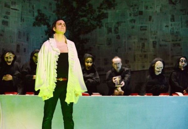 Sie stellt eine der besten Produktionen im Repertoire des Theaters Würzburg dar: Francois De Carpentries’ Inszenierung von Mozarts „Don Giovanni“, die bereits am 22. 6. 2013 ihre Premiere feierte und auch diese Saison wieder auf dem Spielplan des Mainfrankentheaters steht. Dem Regisseur gelingt es ausgezeichnet, die Entstehungszeit des Werkes mit unserer heutigen Ära zu verbinden und dabei mit vielen neuen Aspekten aufzuwarten. Seine gelungene Regiearbeit ist insgesamt recht moderner Natur, weist aber auch konventionelle Elemente auf. Dass der Nachmittag sehr kurzweilig und spannend geriet, ist neben dem klug durchdachten Konzept auch De Carmentries’ logischer und stringenter Personenregie zu verdanken. Darüber hinaus versteht er sich trefflich auf Tschechow’sche Elemente. Das wird deutlich, wenn er Don Ottavio bei „Dalla sua pace“ von Anna beobachten lässt oder im Finale des ersten Aktes die geisterhaften Masken Elvira, Anna und Ottavio vom Hausherrn schon lange vor seinem eigentlichen Auftritt neugierig beobachten lässt. Ein weiteres Beispiel ist die Anwesenheit Elviras bei der Szene des Commendatore im zweiten Akt, bei der sie von Don Giovanni geküsst wird. Vorher haben dieser und Leporello im Radio Opernmusik angehört.