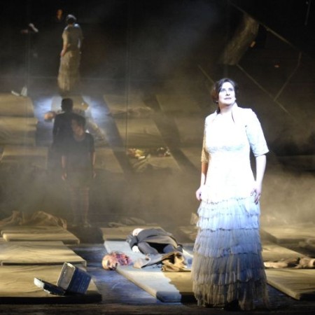 Der Vielfalt an Deutungen von Wagners „Tristan und Isolde“ hat Hermann Schneider am Mainfrankentheater Würzburg eine weitere hinzugefügt. Und das auf beachtlichem Niveau. Poetischen Stimmungszauber atmete bereits das bebilderte Vorspiel, in dem ein zuerst einsamer kleiner Lichtpunkt allmählich zum hell leuchtenden Stern wird. Aus den ihn umgebenden kosmischen Gefilden schälen sich immer stärker die Namen von Tristan und Isolde heraus, um dann wieder zu verglühen. Die Liebenden als Zentrum des Weltalls – ein sehr ästhetischer, romantischer Beginn, zu dem sich im Folgenden noch ein überzeugendes geistiges Gedankengebäude gesellt. Der Regisseur legt keinen Wert auf Äußerlichkeiten, sondern legt den Focus ganz auf die innere Handlung. Essentielle Bedeutung kommt bei ihm dem Augenblick zu, in dem Tristan und Isolde den Trank zu sich nehmen. Diesen fasst er in Einklang mit zahlreichen modernen Interpretationen des Werkes nicht als simples Liebeselixier auf, sondern lehnt sich bei seiner Interpretation stark an Thomas Mann an, nach dem das Paar auch Wasser hätte trinken können. Auch für Schneider ist entscheidend, dass die beiden lediglich glauben, sie hätten einen Todestrank getrunken. Sie wollen sterben. Dementsprechend begeben sie sich auf die Schwelle zum Totenreich, auf der sie bis zum Ende wandeln und auf der Liebe und Tod zu Synonymen werden.