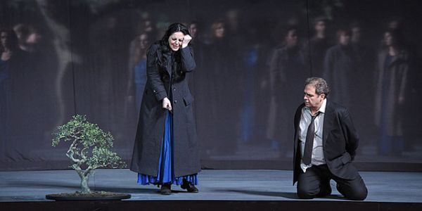 Nach einem solchen „Overkill“ an (dummer) Regie erschien die leere Einheitsbühne, die uns früher so langweilte, plötzlich als eine sehr willkommene Oase der optischen Ruhe, die der Musik und den Sängern allen Raum ließ. Und wie erfreulich zu sehen, dass es auch noch Regisseure gibt, die mit Sängern an Rollenprofilen arbeiten, und die eine Geschichte inszenieren, anstatt sie zu kommentieren. Plötzlich erscheint es fast unwirklich, dass ein Regisseur an einem Abend „nur“ drei Requisiten braucht: eine kleine heilige Bonsai-Eiche, eine geweihte Sichel und einen Gong. Bei Normas berühmter Arie „Casta Diva“ genügte ein Lichteffekt, um den Bonsai in einen großen Baum zu verwandeln, in dessen riesigen Schatten die Sängerin, erst eine kleine Frau in grauem Mantel, zu einer zeitlosen, überlebensgroßen Priesterin mutierte – einer „Projektion“ der Menge, die eine Führerin braucht. So poetisch, mystisch und dazu auch noch intelligent interpretiert haben wir diese Arie noch nie gesehen und gehört.