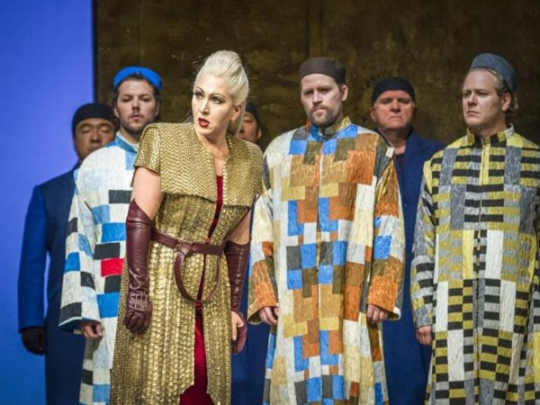 Er wirft sich vor allem im ersten Akt sämtlichen Spitzentönen souverän entgegen, singt nuanciert, sein warmes Timbre erinnert in der Mittellage stellenweise an Placido Domingo. Überflüssig also zu erwähnen, dass sein überzeugend dargebotenes "Nessun dorma" den einzigen Szenenapplaus des Abends hervorruft. Am meisten gespannt jedoch war ich auf die Turandot von Jennifer Maines. Ich habe sie bereits vor einigen Jahren am TLT einmal als "Manon Lescaut" gehört, später als Catalanis "Wally". Danach hat sie Mezzorollen wie die Fürstin in "Adriana Lecouvreur" interpretiert und ich war zugegebenermaßen skeptisch, wie so eine Turandot klingen kann. "Einfach toll" ist die Antwort: Bedrohliche mezzohaft gefärbte Tief- und Mittellage mit schneidend scharfer und präziser Höhe im zweiten Akt, dazu eine verletzliche, doch niemals kindliche, verunsicherte Frau in der Kusszene. Die Kanadierin bringt alles mit, was die Rolle verlangt – samt enormer Bühnenpräsenz – und meistert sie souverän.