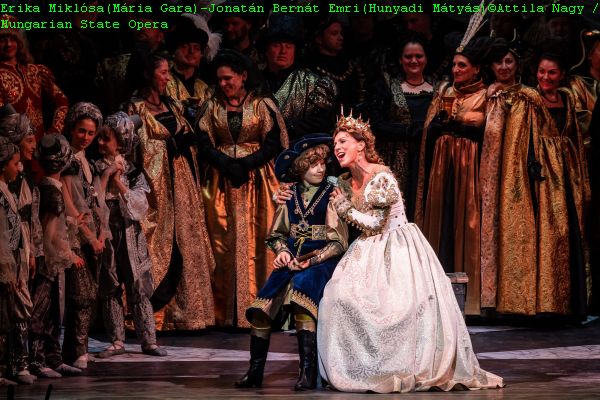 Regisseur und Intendant Szilveszter Ókovács gelang es dem Publikum die komplizierte Handlung in nachvollziehbaren spannenden Bildern vorzuführen. Wie bereits in der letzten Inszenierung dieser Oper wurde auch dieses Mal die Rolle des jungen Mátyás aufgeteilt. Auf der Bühne agierte Jonatán Bernát Emri als 13.-jähriger Mátyás, während sein Part von der für die erkrankte Gabriella Balga eingesprungene Melinda Heiter am Bühnenrand stehend vom Blatt gesungen wurde. Tamás Solymosi verantwortete die stimmige Choreografie der, ungarisches Flair beschwörenden, Hochzeitstänze im dritten Akt. Die farbenprächtige historisierende Ausstattung besorgte Krisztina Lisztopád. Sensibel beleuchtet wurden die einzelnen Akte von Tamás Pillinger. In musikalischer Hinsicht gelang es Balázs Kocsár als Dirigent am Pult des Orchesters der ungarischen Staatsoper die farbige Pracht dieser Bel Canto lastigen und von ungarischer Volksmusik durchzogenen Oper in allen Nuancen funkelnd erstrahlen zu lassen. Und auch der Chor der ungarischen Staatsoper sang bei dieser Nationaloper unter der verdienten Leitung von Gábor Csiki auf höchstem Niveau.