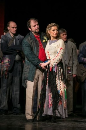 Bilozub Olekszandr mit ihrer rustikalen Ästhetik sowie mit starken SängerdarstellerInnen vorzüglich. Vidnyánszky interessiert die Frage, ob Schicksal vorgegeben, unausweichlich ist, oder ob der Mensch es beeinflussen kann. Sind wir hilflos dem Regelwerk der Skylla und Charybdis unserer Gesellschaft ausgeliefert, müssen gar die Bürde einer einmal begangenen Sünde hoffnungslos bis zum Ende tragen? Wer schafft es, sich mit seinem Schicksal auseinanderzusetzen, das Kreuz zu schultern und damit die Herausforderungen des Lebens mit dennoch erhobenem Kopf und Demut zu meistern? Dieser Ansatz zieht sich wie ein roter Faden durch die oft emotional stark berührende Produktion. Alle leben mit ihren Sünden und ihrer schweren, meist nicht bewältigten Vergangenheit und versuchen sich irgendwie aus dem Netz- und Räderwerk von Regeln und Zwängen zu befreien. Das im wahrsten Sinne des Wortes Fatale dabei ist, dass es erst des Todes eines kleinen Kindes bedarf, des einzig unschuldigen „Akteurs“, dass diese vermeintlich heile Welt kräftig durchgeschüttelt wird und die Konflikte offen ausbrechen.