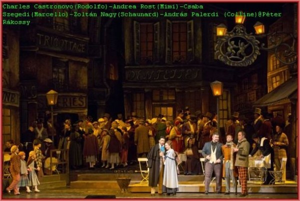 Der große Erfolg dieses Opernabends beruhte aber auch auf dem äußerst feinfühligen Dirigat des Rumänen Christian Badea am Pult des Orchesters der Ungarischen Staatsoper. Er hielt gekonnt die Balance zwischen jenen zarten, voller Lyrismen angereicherten Melodien Puccinis und dessen eher pastosen Passagen. Der Chor und Kinderchor waren für ihren Auftritt im zweiten Akt von Kálmán Strausz und Nikolett Hajzer bestens vorbereitet. Ich habe diese Produktion sicherlich schon dutzende Male in Budapest gesehen, aber immer wieder fasziniert mich, neben dem ausgelassenen fröhlichen zweiten Bild, die Winterlandschaft des dritten Bildes. Nachdem sich der Vorhang langsam geöffnet hat wird eine in Nebel getauchte Zollschranke sichtbar, hinter der sich eine mit alten Gaslaternen gesäumte winterliche Allee perspektivisch verkürzt nach dem Bühnenhintergrund zu verliert. Schneeflocken fallen vom Schnürboden herab und die Kälte dieser Szenerie bereitet das letale Ende Mimis im vierten Bild behutsam vor. Puccini aber stellt die Antipoden Leben und Tod im vierten Bild exemplarisch gegenüber.