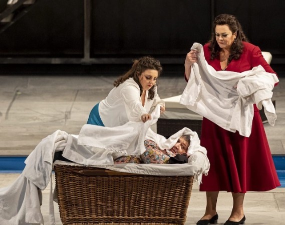 Ainhoa Areta lässt als Alice einen vollen und klangschönen Sopran hören und stehlt auch große Persönlichkeit aus. Violeta Urmana ist hier völlig ihrer Persönlichkeit entsprechend die weise ältere Freundin von Alice mit einem vollen Mezzo, der völlig vergessen lässt, dass sie sich einmal intensiv für einen Wechsel ins Sopranfach bemühte. Ihr „Reverenza!“ im folgenden Akt hat große humoristische Tiefe und dezenten Sarkasmus. Herrlich spielt sie das, als Grande Dame! Chiara Amarù spielt eine eher unauffällige Meg Page mit gutem Mezzo.