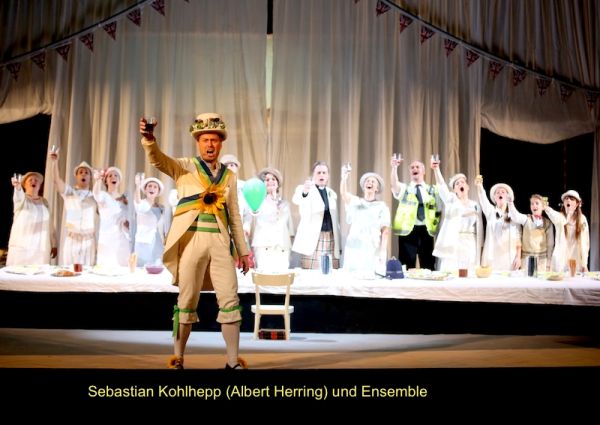 Kurz zur Handlung des 1948 in Glyndebourne uraufgeführten Werkes: Im idyllischen Loxford steht Lady Billows als selbst ernannte Hüterin der Moral gemeinsam mit den Honoratioren der Stadt vor der Wahl: Welches Mädchen soll zur Maikönigin gekürt werden! Unterstützt von ihrer Haushälterin Florence Pike ist Billows verbittert über den Verfall der Sitten: Die Röcke sind zu kurz, die Ausschnitte zu tief, gegen jeden Vorschlag des Komitees kommt ein Veto. Da bringt Polizeichef Budd einen Mann ins Spiel: Albert Herring, der etwas einfältige, aber wohlerzogene Sohn der Gemüsehändlerin, soll den Titel bekommen. Beim Fest will ihm dann das Liebespaar Sid und Nancy einen Streich spielen und macht ihn betrunken, was aber nach einer durchzechten Nacht dazu führt, dass sich Albert von seiner dominanten Mutter löst und sein Leben selbst in die Hand nimmt. Viel Autobiographisches von Britten floss in das Libretto von Eric Crozier ein, gesungen wird – wie an der Volksoper üblich – leider in einer nicht allzu gelungenen Übersetzung von Carolyn Sittig und Waltraud Gerner.