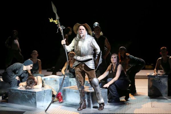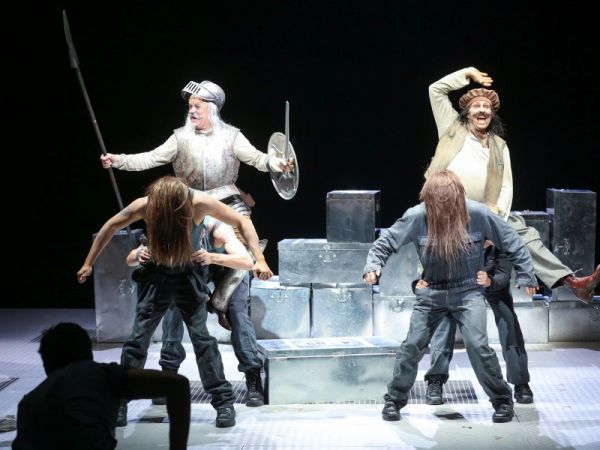 Regisseur Olivier Tambosi verlegte den Musicalklassiker in die heutigen Zeit – was gar nicht so falsch war! Denn in Zeiten der modernen Inquisition werden Menschen heute noch immer unschuldig gefoltert und zu Unrecht verurteilt. Dazu kommt die Gewaltbereitschaft verschiedenster Kulturen die durch Jahrhunderte zu Verfolgungen und zur Flucht vor dem Feind geführt haben. Setzen wir uns also mit der Thematik, mit dem Ursprung Miguel de Cervantes intensiver auseinander, so kommen wir zu der Erkenntnis, dass sich seit dem 16. Jahrhundert nicht viel verändert hat. Denn die Versklavung des Volkes und die Gewaltbereitschaft finden seinen Ursprung in der Geschichte aus der wir leider immer noch nichts gelernt haben. Somit spielt Tambosis „Der Mann von La Mancha“ nicht in der Landschaft Kastilien – La Mancha sondern direkt im Kerker, wo wir gewalttätigen Straftätern begegnen und der Hure Aldonza, die alle aus der Gosse entstanden und wo vielleicht wirklich einige von ihnen zu den Sternen hinaufblicken. Die Inszenierung zeichnet die nackte Realität auf, und nur Don Quixote (Cervantes) bewegt sich hier zwischen Traum und Wirklichkeit, um die eigentliche Realität zu verdrängen.
