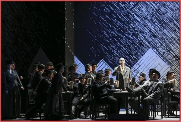 Ensemblemitglied Vincent Schirrmacher ist relativ kurzfristig für den erkrankten Endrik Wottrich eingesprungen und läßt keine Sekunde hören, dass er gestern zum ersten Mal als Hagenbach zu erleben war, so sicher beherrscht er diese anstrengende und fordernde Partie. Er verfügt über einen schlanken Tenor mit metallischem Klang, der an Francisco Araiza erinnert, und glänzt mit Gefühl, Kraft und scheinbar müheloser Höhe gleichermaßen. Größere Unsicherheit war da Kari Postma in der Titelrolle anzumerken, die gestern ihr Hausdebüt und ebenfalls ihr Rollendebüt gab. Darstellerisch eine veritable Wally, stimmte der eine oder andere Einsatz nicht, was sicher der Premierennervosität zuzuschreiben war. Die Norwegerin verfügt an sich über einen Sopran mit kräftiger Höhe, enthält aber dem Publikum das hohe C in der Schlußszene vor, und bliebt in der Mittellage in Bezug auf Volumen hinter ihren männlichen Kollegen zurück. Elisabeth Schwarz ist ein hinreißender Walter und läßt schon im ersten Akt ihren hellen, geläufigen Sopran im Jodler um das Edelweiß bravourös erklingen, Daniel Ohlenschläger gibt den Infanteristen passend mit gespenstisch anmutenden Bassbariton und Annely Peebo ist als Afra eine fordernde Wirtin. Bühnenurgestein Kurt Rydl legt den alten Stomminger mit großem Ausdruck und überzeugendem Spiel als despotischen Vater an.