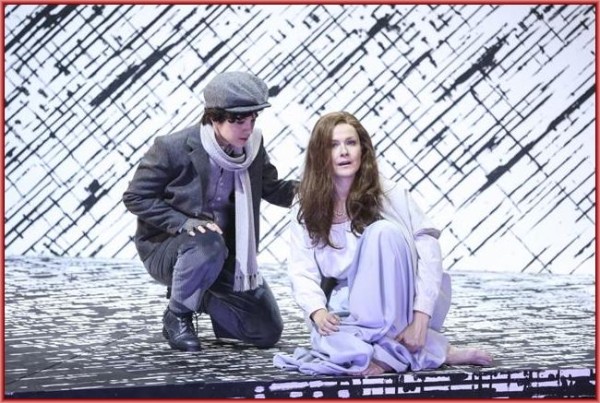 Regisseur Aron Stiehl installiert in seiner Umsetzung die eigentliche Randfigur des Infanteristen als omnipräsente Personifizierung des Schicksals, der die Geschichte um enttäuschte Liebe, Rache samt (anders als im Roman) tragischem Ende erzählt, dem Orchester den Einsatz gibt und die Handlung steuert, ja sogar als Tod denselbigen bringt. Damit ist die Rolle, die eigentlich als komisches Moment vom Librettisten in die Opernhandlung geschrieben wurde, eben dieser Komik beraubt und gibt der Handlung etwas viel mehr Schicksalhaftes, so dass Wally und ihr Hagenbach gezwungenermaßen auf den Lawinenabsturz des Geliebten, dem sich die Titelheldin in den Abgrung hinterher wirft, zuzusteuern scheinen. Frank Philipp Schlößmann hat dazu auf der permanenten Veränderungen unterworfenen Drehbühne eine schroffe Kulisse gebaut, die an die schraffierten Hintergründe aus Tuschezeichnungen erinnert. Auch die gelungenen Kostüme von Franziska Jacobsen, frei von jeglichem Lokalkolorit, sind sämtlich in Schwarz, Weiß und Grautöne gehalten und komplettieren so den Eindruck eines illustrierten Buches, von dem der Infanterist Seite für Seite umzuschlagen scheint.