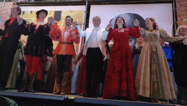 Die Musik von Cole Porter ist eingängig, teilweise sehr schmissig und kommt gut an, sei es jetzt „Wunderbar“, „Premierenfieber“, „Wo ist die liebestolle Zeit“, als auch „Schlag nach bei Shakespeare“ und vieles andere. Dr. Attila Lang hat die Inszenierung gemacht, er ein alter Hase, Chef-Producer der Wiener Festwochen und geübter Musiktheatermacher hat ein glückliches Händchen bei seiner „Kiss me, Kate“, die er übrigens das erste Mal inszeniert. Viele Musicals hat der gebürtige Ungar schon auf die Bretter, die die Welt bedeuten, gebracht, darunter „Anatevka“, „Gigi“ und „Cabaret“, aber jetzt zum ersten Mal bei der Coburger Sommeroperette „Kiss me, Kate“.