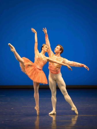 Ein bravouröses Rollendebüt als Haupttänzerin in George Balanchine’s „Thema und Variationen“ gab die junge Solotänzerin Nikisha Fogo, die nicht nur mühelos ihre blitzsaubere, flinke Technik ausspielt (und dafür mehrmals Szenenapplaus erntet), sondern auch die anspruchsvolle Choreographie auskostet und mit einem sympathischen Selbstbewusstsein zum Besten gibt. Bei dieser hervorragenden Leistung hofft man auf weitere Hauptpartien für sie. Ihr kongenialer Partner Denys Cherevychko ermöglicht ihr traumhaft schöne Hebefiguren und brilliert in seinen Variationen mit sauberen Pirouetten, mühelosen Sprüngen und jugendlichem Charme. Ebenfalls brillant sind die Halbsolisten-Paare (Rollendebüt bei Sveva Gargiulo, auffallend gut Francesco Costa und Rikako Shibamoto), sowie das harmonische Corps de Ballet. Tosender Applaus, nicht zuletzt auch für die schwungvolle Musik von Peter Iljitsch Tschaikowsky, man geht beglückt in die Pause.