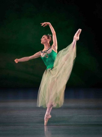 Bereits in der letzten Saison waren Nina Polakova und Robert Gabdullin als 1. Paar in „Emeralds“ zu erleben, und harmonieren elegant miteinander. Polakova gestaltet in diesem Ballett die Armhaltung besonders feingliedrig und detailgetreu.