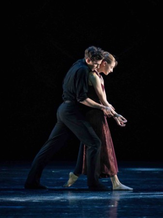 Mit Madison Young und Jakob Feyferlik hat man zwar ein junges, aber keineswegs unreifes Hauptpaar, Feyferlik vermochte bereits in zahlreichen Hauptpartien zu überzeugen (gerne erinnert man sich an seine grossartige Interpretation als Nijinsky) und ist für jede noch so komplizierte Hebung ein sicherer Partner, Young weiss gekonnt, jugendliche Dramatik und den Wechsel zwischen Hektik und Ruhe zu vereinen, man darf sehr gespannt sein, welche Partien die junge Tänzerin in den nächsten Jahren verkörpern wird. Abwechselnd mit den Pas de deux, wo immer wieder weisser Sand von der einen Hand in die andere rieselt (passend zum Vorhang im Hintergrund, der wie ein Sandbild gerafft ist), wirbeln vier weitere Paare (ebenfalls in kleinen Pas de deux und Ensemble) über die Bühne, energiegeladen in raschen, teils auch hektischen und dann wieder fliessenden Bewegungen. Vor allem die unermüdlich hoch springende und präzise Nikisha Fogo, die selbst beim Schlussapplaus keinerlei Ermüdungserscheinungen zeigt, und in allen drei Stücken Höchstleistung bot, sei an erster Stelle lobend erwähnt, ebenso erfreuen Kiyoka Hashimoto, Fiona McGee und Sveva Gargiulo durch Geschmeidigkeit und Präzision.