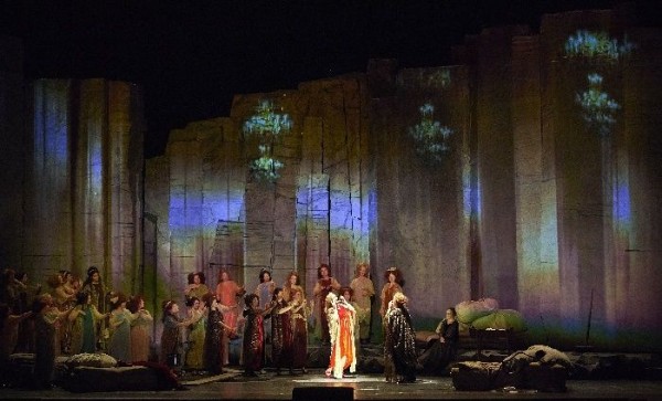 Immerhin fiel dem Regisseur im 3. Akt noch etwas Interessantes ein. Zwar verwässerte sich die Prüfung von Barak und der Färbersfrau, weil sie von etlichen Statisten umzingelt waren. Auch war das regenartig vom Bühnenplafonds rieselnde und damit kaum sichtbare Wasser nicht sehr überzeugend als jenes, dass die Kaiserin verlockenderweise trinken soll. Aber dass wir im Gedanken der beiden Paare schon das jeweils erste Baby sehen und am Ende die sperrige Felswand endlich aufgeht und eine Schar von Kindern mit Kerzen nach vorn kommen lässt – das war dann wieder etwas versöhnlich.