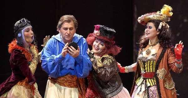 Das „Ensemble“ war gewissermaßen voll versammelt, und Adrian Eröd ist eine hohe Besetzung für den Sprecher (der dem Tenor Unterricht in Mozart-Stil geben könnte…) und den 2. Priester, der sich mit Papageno herumärgert. Der erste Priester, der nicht so viel Humor versprühen darf, war Peter Jelosits. Der Monostatos von Benedikt Kobel machte auf sich aufmerksam (und musste auch keine politisch korrekten Textänderungen singen, wie man es im Theater an der Wien erlebt hat), Ileana Tonca, eine gefühlte Ewigkeit am Haus, erweckt als Papagena den Eindruck, die Zeit sei spurlos an ihr vorbei gegangen, Herbert Lippert und Ryan Speedo Green brüllen als die Geharnischten los (das ist so vorgesehen), und die drei Damen (Fiona Jopson, Ulrike Helzel, Zoryana Kushpler) blödeln sich durch die Gegend.