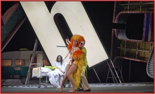 Zirzensischer Wirbel beginnt bereits im Foyer. Das Publikum wird von kostümierten Choristen mit heiterer Ausgelassenheit empfangen (unter ihnen auch solche, die später kleinere Solopartien übernehmen). „Alles ist Spaß auf Erden“ scheint man mit Verdis „Falstaff“ signalisieren zu wollen. In der Tat gilt dieser Satz auch für Prokofjews „Liebe zu den drei Orangen“, selbst wenn der Komponist sein Werk nicht ausdrücklich mit „opera buffa“ untertitelte. Gemeinsam mit dem Stofflieferanten Carlo Gozzi, an dessen originalem Märchenspiel u.a. auch der russische Regisseur Wsewolod Meyerhold Hand anlegte, opponierte Prokofjew gegen das „akademische“ Theater und setzte auf Resonanz auch und besonders beim einfachen, vergnügungswilligen Publikum. Romantisch übersteigerte Gefühlsäußerungen hatten damit ausgedient, jetzt galt das Prinzip einer (intelligenten) Verlustierung.