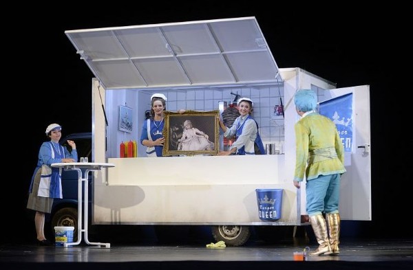 „Dies Bildnis ist bezaubernd schön“ – Die drei Damen vom Grill ( Elena Puszta, Joslyn Rechter, Iris Marie Sojer) und Tamino (Sangmin Jeon)