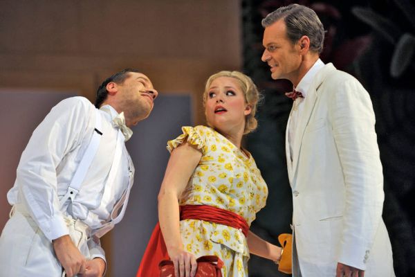 Wie schön, wenn die spärlich gesäeten Operettenaufführungen einmal nicht die ewigen fünfzehn Hits spielen, sondern sich dem "Randrepertoire" widmen, so an den Wuppertaler Bühnen Eduard Künneckes "Glückliche Reise" von 1932 gespielt wird. Eine Operette ganz ohne Adel, sondern aus ihrer Zeit heraus: Brasilienauswanderer, die sich mit Reisebüromädels aus Deutschland schreiben. Nach dem kurzen, exotischen Vorspiel geht es in ein Berlin der Weimarer Republik, wo die recht harmlose Komödienintrige allein durch die putzigen Menschen und Künneckes mitreißende Musik lebt; Rumba, Foxtrott, Paso Doble und die damalige, schmissige Tanzmusik, viel Komik, etwas Sentiment, da ist jede musikalische Nummer ein echter Treffer.