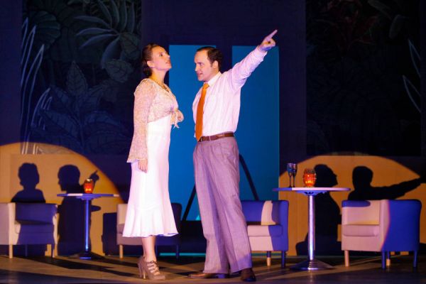 Doch ein Manko hat der Abend, denn die Darsteller werden akustisch verstärkt, was in den Dialogen durchaus Sinn macht, da es die Sprechstimme schont, empfinde ich musikalisch störend, zumal es die eigentliche vokale Leistung schwieriger zu beurteilen erschwert. So scheint das seriöse Paar für mich nicht zufriedenstellend, denn Elena Fink als Lona Vonderhoff hat Schwierigkeiten ihre Sopranstimme in den Höhen mikroporttauglich zu verschmälern, da wäre "ohne" sicherlich vorteilhafter. Boris Leisenheimers Tenor als Robert von Hartenau kommt die Verstärkung eher entgegen, da seine Stimme im Höhenvolumen leider zunehmend unkontrolliert klingt. Beide gestalten ihre Partien sonst akkurat. Richtig gut ist das "leichte" Paar, denn Olaf Haye und Annika Boos als maskuliner Stefan Schwarzenberg und sich durch das Leben flunkernde Monika Brink haben sichtlich und hörbar Spaß an den spritzigen Duetten und tanzen sich schlichteweg einen Wolf vor Vergnügen. Gregor Henze, zwar verletzt und mit Krücke, mimt einen herrlich kodderigen Reisebürobesitzer Homann und Stefan Ullrich ergänzt stilsicher als Kapitän Brangersen/Regierungsrat Hübner.