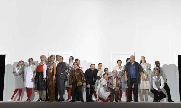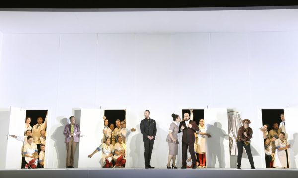 Die Türen werden dann ausgiebig in Aktion gesetzt. Zu jedem Orchesterschlag öffnen bzw. schließen sie sich. Das gesamte Opernpersonal: rein und raus, raus und rein. Ach, du lieber Gott, denkt man bei dieser berserkerischen Aktionslust zunächst, die tatsächlich etwas zu viel des Guten tut. Aber bei Mozarts Oper handelt es sich nun einmal um einen „folle journée“. Im übrigen beruhigt sich die Inszenierung von Joe Hill-Gibbins (sie wird von der English National Opera übernommen) nach dieser Introduktion entschieden, und das Öffnen der Türen verdichtet sich immer stärker zu Chiffren für Hintergründiges, Tiefenpsychologisches. Fast denkt man an Bartóks „Blaubart“.