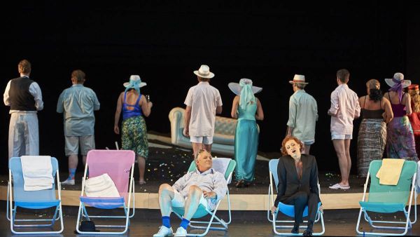 Warum nach dem Prolog Maler, Dr. Schön und Alwa am Boden hingestreckt liegen sind später auch schon mal übereinander her fallen, erklärt sich nicht. Dass sich die Zirkusatmosphäre des Beginns in der Folgehandlung fortsetzt (der Kammerdiener lamentiert sogar im Affenkostüm), ist konzeptionell zwar nicht unlogisch, wirkt auf Dauer jedoch ziemlich penetrant. Der dritte Akt als Strandkonversation in Liegestühlen, die Freier Lulus mit Engelsflügeln, eine „heilige Maria“, welche zuletzt von der sterbenden Gräfin (immerhin mit einiger Logik) angesungen wird – seltsame und wenig sinnerklärende Bilderfindungen einer offenbar von Assoziationszwang infizierten Regisseurin, die in der Premiere denn auch einigen Unmut seitens des Publikums zu spüren bekam.