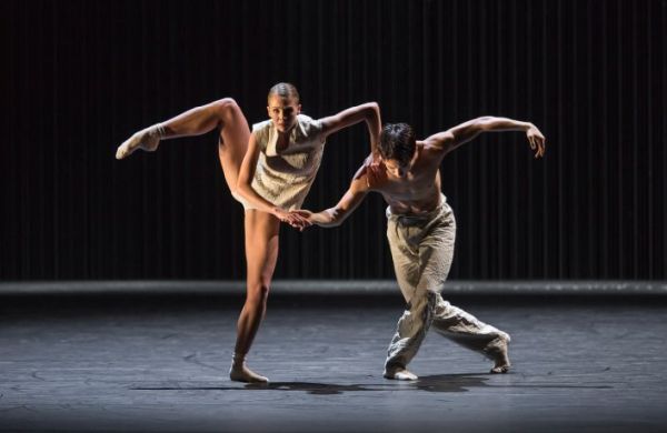 Mit William Forsythes IN THE MIDDLE, SOMEWHAT ELEVATED stand einer der ganz grossen Klassiker des modernen Tanzes am Anfang dieses interessanten Programms. Forsythe untersucht dabei in einer Art Variationenfolge Elemente des klassischen Tanzes, führt sie zu verrückten Formen, steigert die Intensität im Zusammenspiel mit der repetitiven, gleichförmigen elektronischen Musik von Thom Willems zu soghafter Wirkung. Gebannte Stille herrschte im Saal, fasziniert verfolgte man die exzellenten Tänzerinnen Anna Khamzina, Viktorina Kapitonova, Pornpim Karchai, Irmina Kopaczynska, Constanza Perrota Altube, Giulia Tonelli und die Tänzer Manuel Renard, Wei Chen und Tigran Mkrtchyan bei ihren Solovariationen und in den Paar- und Gruppentänzen. Forsythe vereint in seiner so kunstvoll gearbeiteten Choreografie eine gewisse Atemlosigkeit mit klassischer Eleganz, dekonstruierten und wieder neu zusammengefügten Bewegungsabläufen und einer Prise Witz. Auch hier bleibt die Bühne schwarz, die enganliegenden grünen Trikots heben sich deutlich ab und ermöglichen die genaue Verfolgung der komplexen Abläufe. Über der Bühne, in der Mitte, somwhat elevated, schwebt eine kleine goldene Doppelkirsche, wohl als Anspielung auf die goldenen Säle der Pariser Oper, für welche Rudolf Nurejew einst diese revolutionäre Tanzschöpfung in Auftrag gegeben hatte.