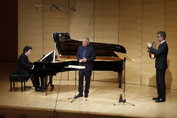 Schon seit 1993 sind der Kölner Gesangsprofessor Christoph Prégardien und sein Begleiter am Klavier Michael Gees sozusagen Stammgäste bei der Schubertiade. Am 23.9. präsentierten sie gemeinsam mit dem hier debütierenden Schweizer Hornisten Olivier Darbellay ein hochinteressant zusammengestelltes Liedprogramm. Am Anfang stand eine Gruppe von bekannten Schubert-Liedern, bei denen sich das differenzierende Ausdrucksvermögen des Tenors erwies; die äußerst schwungvoll präsentierten „Willkommen und Abschied“ sowie „Auf der Bruck“ standen den wunderbar ruhigen, tief empfundenen „Im Abendrot“ und „Die Sterne“ gegenüber. Danach folgte mit Liedern aus dem Zyklus „The Heart of the Matter“ nach Gedichten der englischen Dichterin Edith Sitwell von Benjamin Britten ausgesprochen harte Kost. Der englische Komponist vertonte 1954 für Tenor, Horn und Klavier Sitwells Gedicht „Still falls the rain“, das die deutschen Luftangriffe auf London im zweiten Weltkrieg beschreibt. Nach der Uraufführung 1955 zeigte sich die Dichterin so begeistert, dass in der Folgezeit ein Zyklus entstand, der ein Jahr später beim Aldeburgh Festival erklang. Erst 1983 wurde er wieder nach kleineren Änderungen von Peter Pears in London aufgeführt. Der thematisch düstere Zyklus führt mit weiteren Versvertonungen, Hornfanfaren und Rezitations-Passagen auf das zentrale Gedicht hin. Diese Komposition ganz eigener Art war auch deshalb nicht einfach aufzunehmen, weil die englischen Texte aus rechtlichen Gründen weder im englischen Original noch in deutscher Übersetzung im Programmheft abgedruckt werden durften. Auch wenn man die Texte nur bruchstückhaft verstand, so beeindruckten doch die von Prégardien prononciert vorgetragenen Rezitationen, die teilweise lyrisch ausgesungenen Liedverse und die martialischen Fanfarenrufe des Horns, jeweils unterstützt vom sicheren Pianisten.