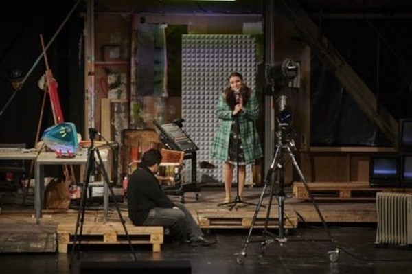 Andrea Moses und Stefan Strumbel harmonieren in ihren jeweiligen konzeptionellen Ansätzen hervorragend miteinander. Die desolaten Lebensverhältnisse heutiger Kunstschaffender werden von ihnen rigoros an den Pranger gestellt. Die Bohèmiens hausen in einem Hinterhof-Atelier, in das Strumbel offensichtlich visuelle Eindrücke aus seiner ersten Werkstatt in Offenburg hat einfließen lassen. Die von Anna Eiermann skurril eingekleideten Protagonisten sind Teil einer digitalisierten und technisierten Medienwelt. Deren Erzeugnisse wissen sie bestens zu nutzen. Damit gelingt es ihnen vorzüglich, sich auf dem stark überlaufenen Künstlermarkt besser zu verkaufen. Sie filmen sich ständig gegenseitig mit Video-Kameras und präsentieren die auf diese Weise festgehaltenen Ausschnitte aus ihrem Leben mit Hilfe zahlreicher Monitore der Kunstszene. Ein weiteres essentielles Element ihrer Behausung stellt eine Tonanlage dar, die ihnen behilflich ist, sich bei ihren Arien als Pop-Stars vor dem Mikrophon gehörig in Szene zu setzen. Manchmal haben sie damit Erfolg, manchmal nicht. Hier haben wir es mit einem ständigen Auf und Ab in dem gnadenlosen Kampf um künstlerische Anerkennung zu tun, das durch einen regen Wechsel von fließenden und stehenden Bildern auf den Fernsehschirmen trefflich ausgedrückt wird. Mal wird die Realität punktgenau übertragen, mal frieren die auf die Monitore projizierten Bilder ein.